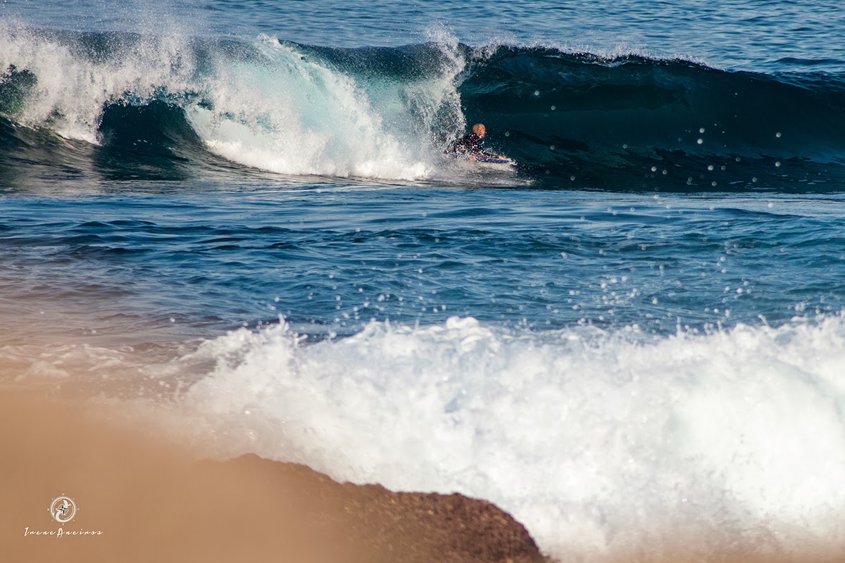 Lo malo fue al salir, ya que después de un par de horas en el agua con una buenas remadas encima y el mar rompiendo con fuerza sobre la costa hicieron que le llevara un rato mas de lo que pensaban.